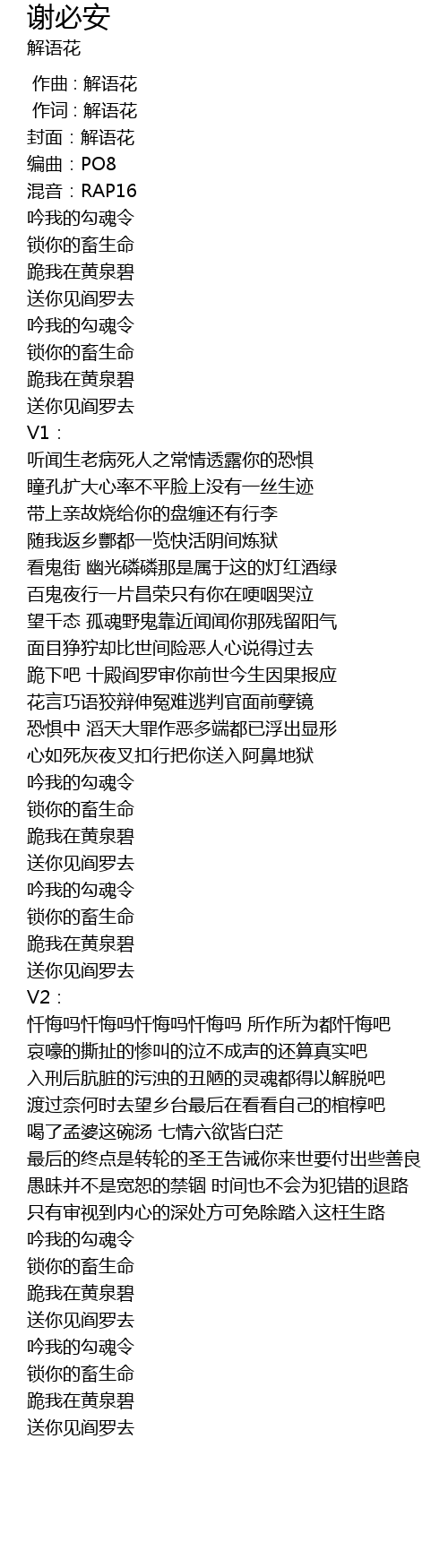 | [01:17.20] | 心如死灰夜叉扣行把你送入阿鼻地狱 |
