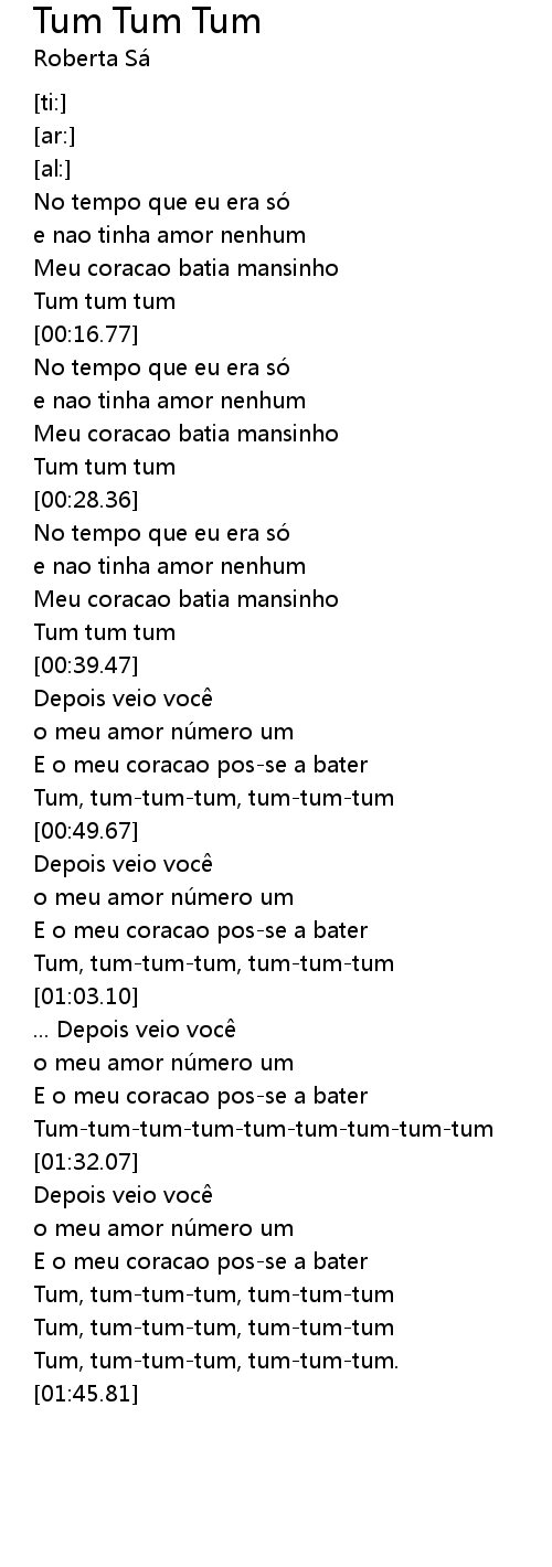 | [00:45.18] | E o meu coracao posse a bater |