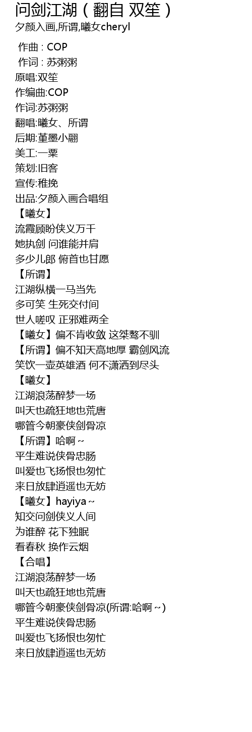 | [00:34.56] | 出品:夕颜入画合唱组 |