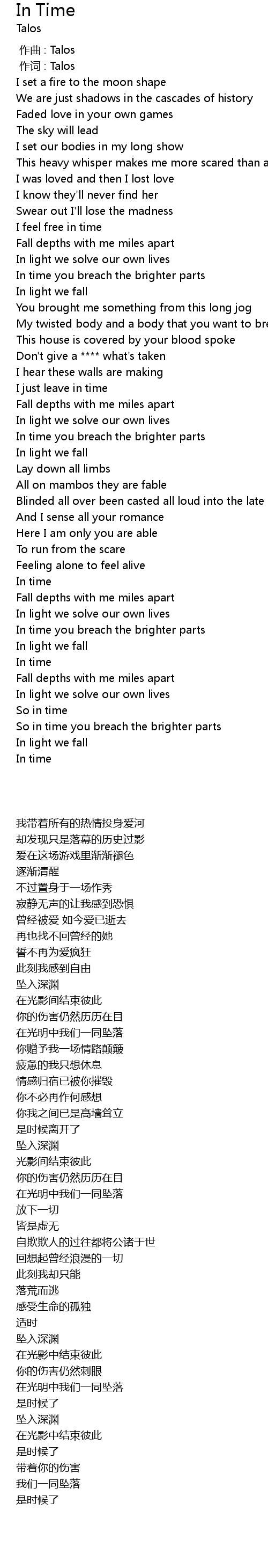 | [00:01.000] | zuò cí : Talos |