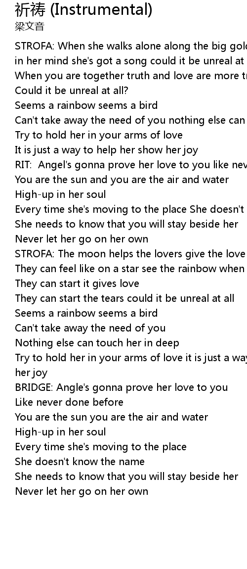 | [00:14.19] | STROFA: When she walks alone along the big golden beach |