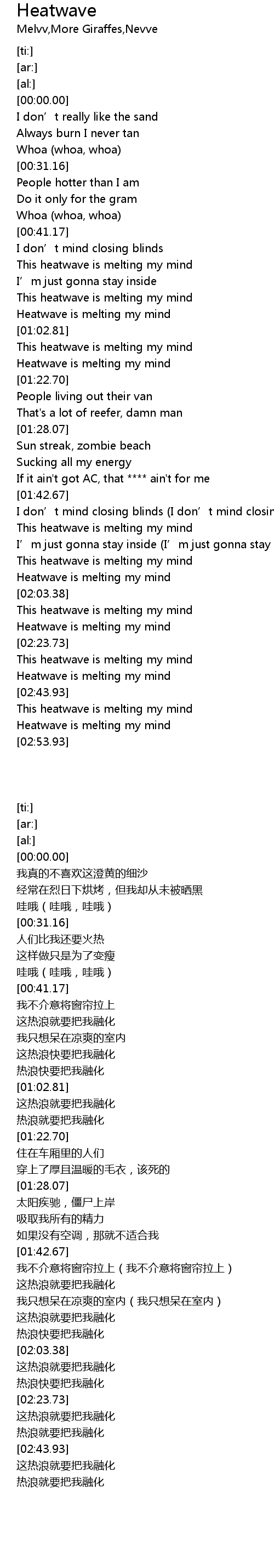 | [02:51.20] | Heatwave is melting my mind |