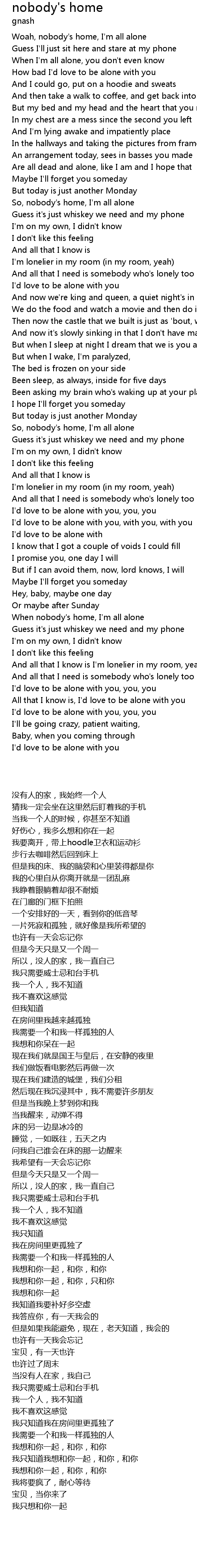 When nobody's home, I'm all alone |