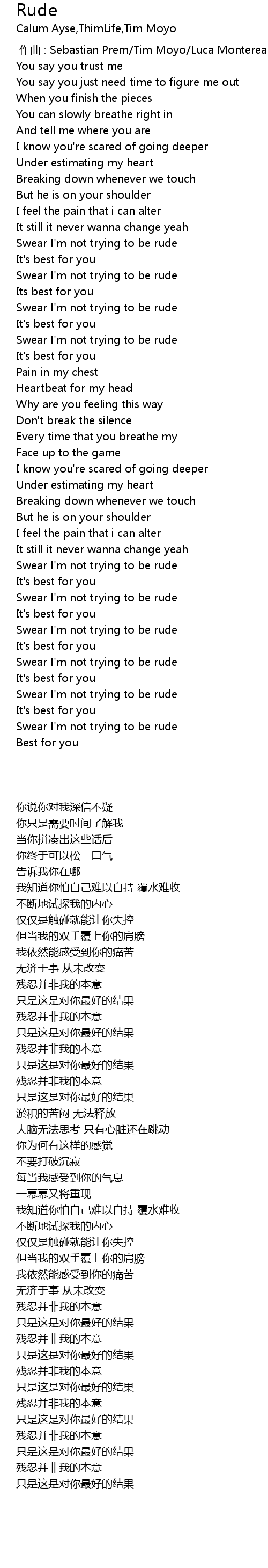 | [00:41.73] | Swear I'm not trying to be rude |