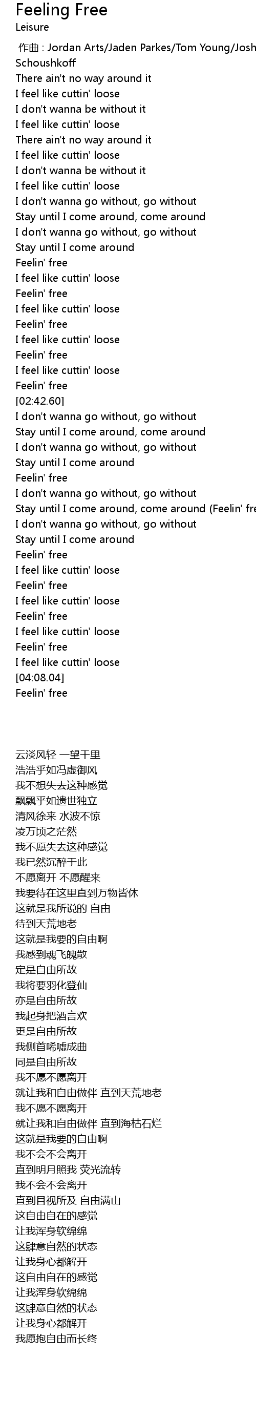 | [03:22.35] | Stay until I come around, come around (Feelin' free) |