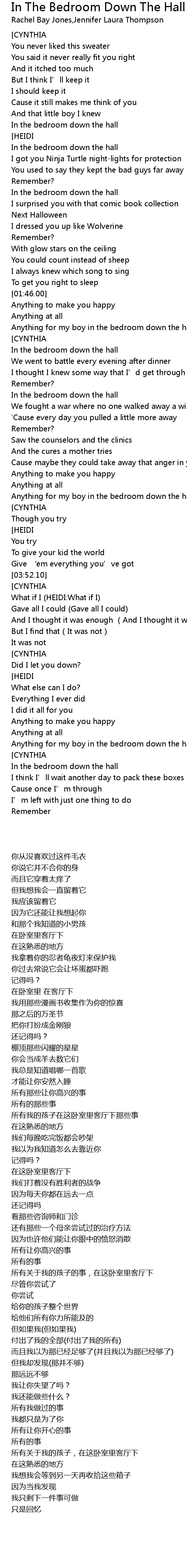 | [04:43.83] | Anything for my boy in the bedroom down the hall |