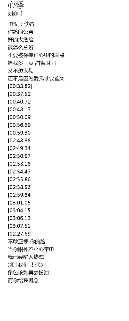 | [03:28.73][03:07.51][02:24.90][01:18.44] | 是爱情让人心悸 |