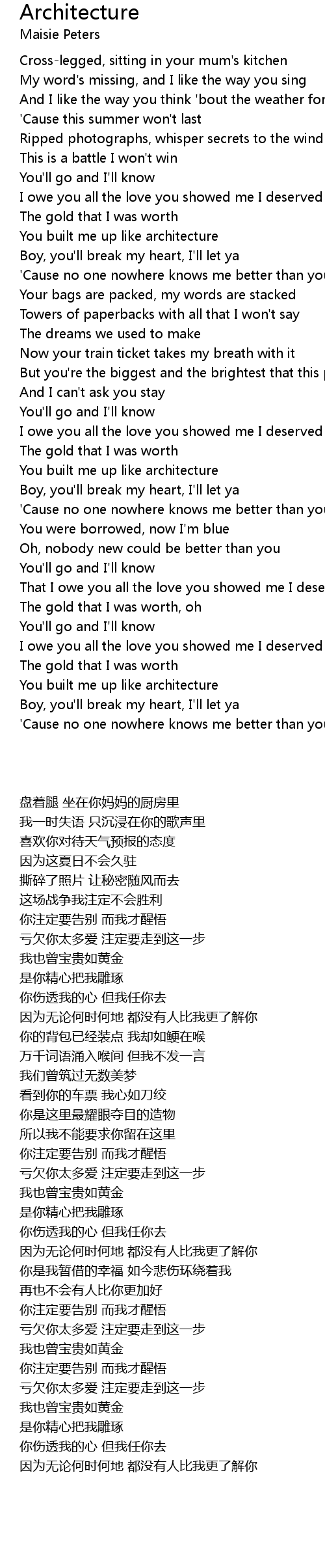 You built me up like architecture |