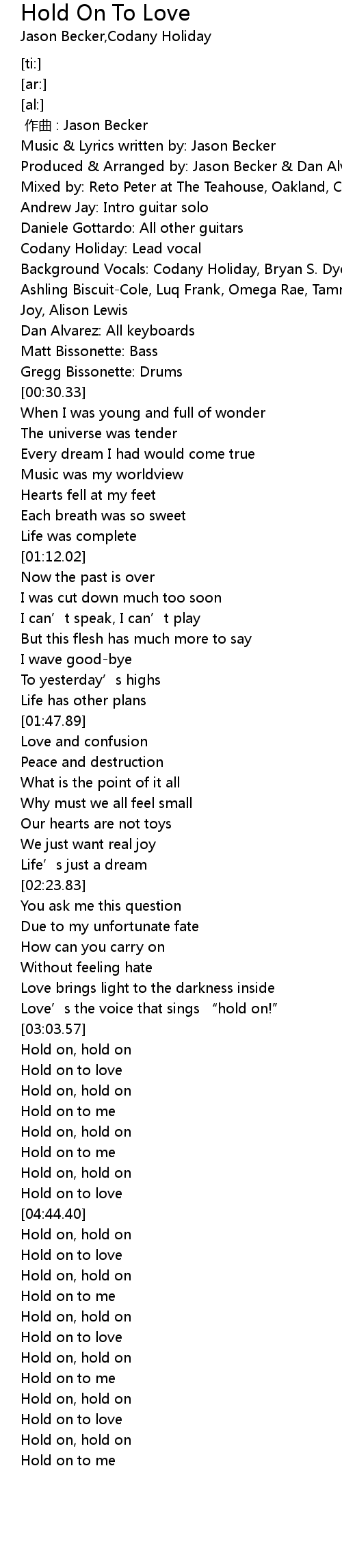| [00:05.16] | Music & Lyrics written by: Jason Becker |