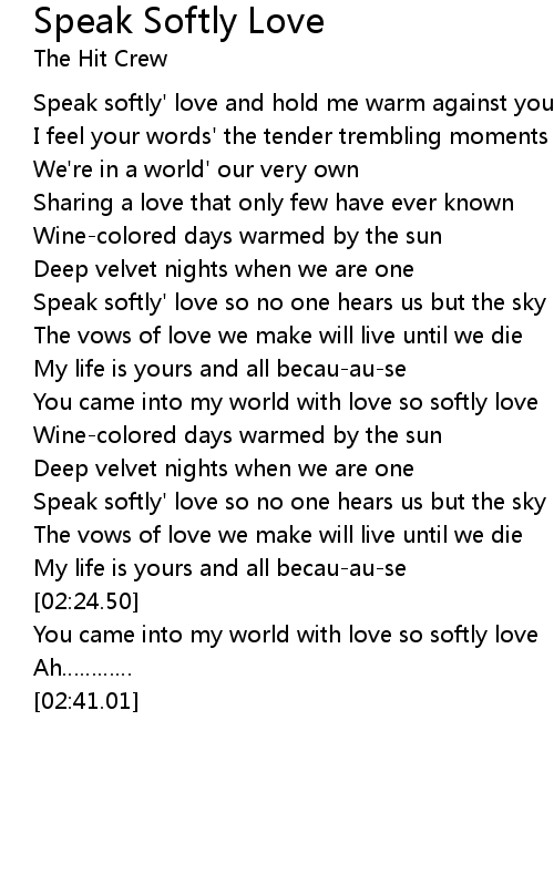 | [00:15.99] | Speak softly' love and hold me warm against your heart |