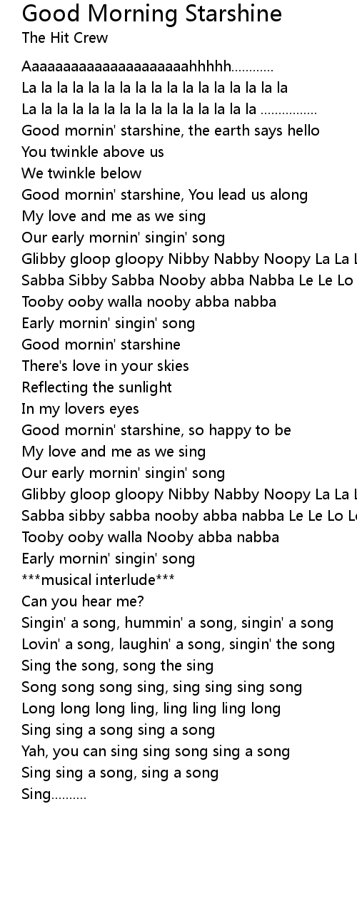 Good mornin' starshine, You lead us along |