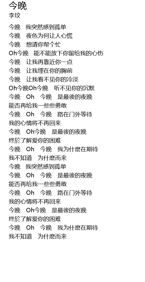 | [03:49.72] | 今晚 Oh今晚 是最後的夜晚 |