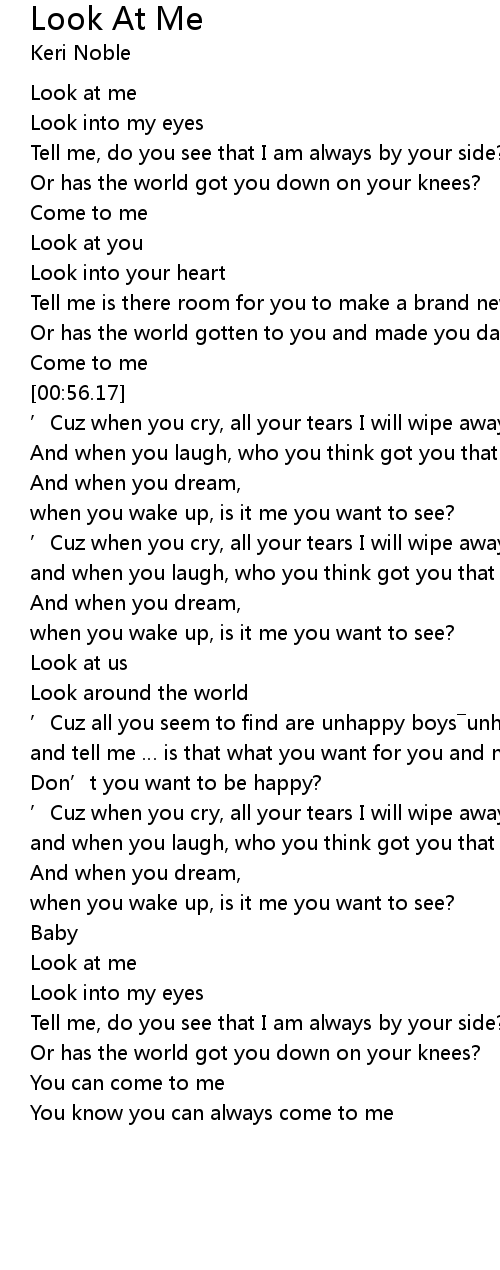 | [00:56.94] | ' Cuz when you cry, all your tears I will wipe away |