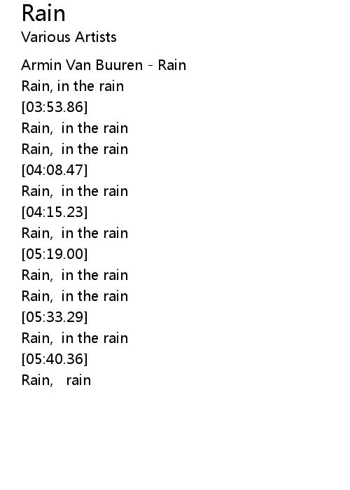 | [00:00.49] | Armin Van Buuren - Rain |
