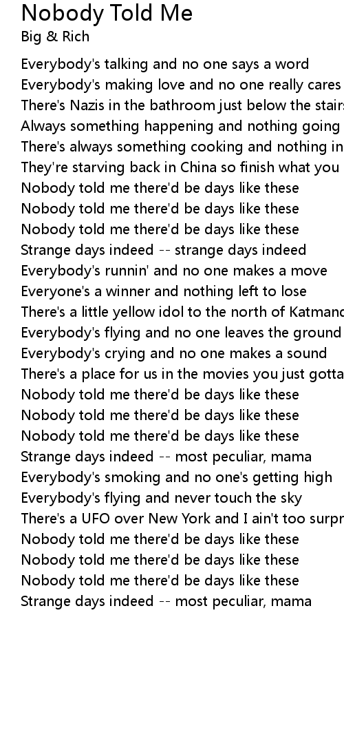 Nobody told me there'd be days like these |