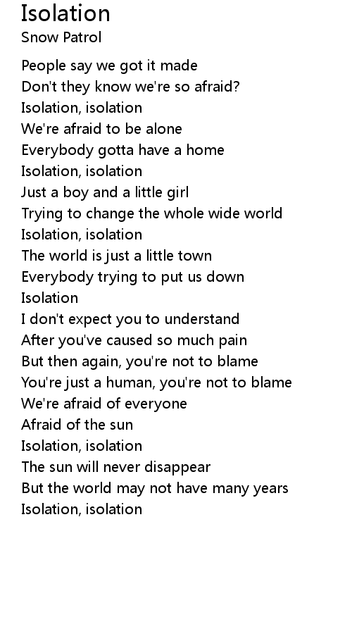 Isolation, isolation |