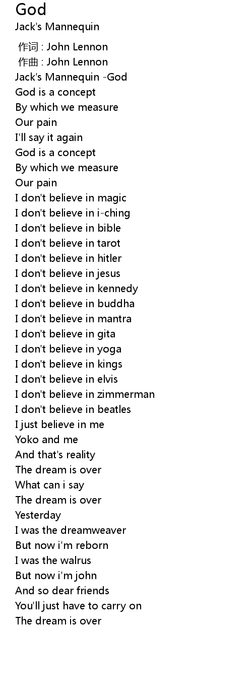 | [00:01.380] | Jack' s Mannequin God |