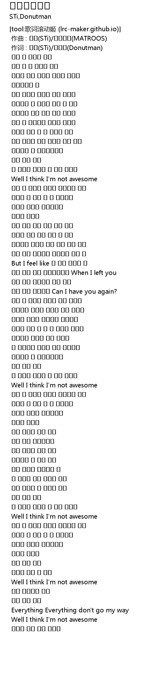 | [00:01.000] | 作词 : 스티(STi)/도넛맨(Donutman) |