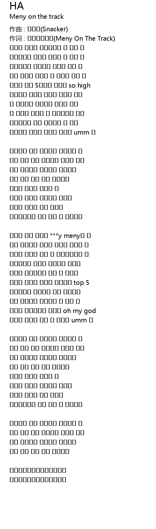 | 作词 : 메니온더트랙(Meny On The Track) | |