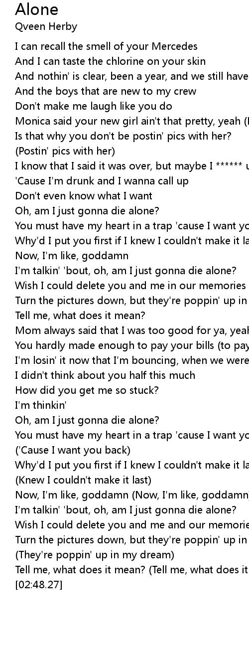 I'm talkin' 'bout, oh, am I just gonna die alone? |