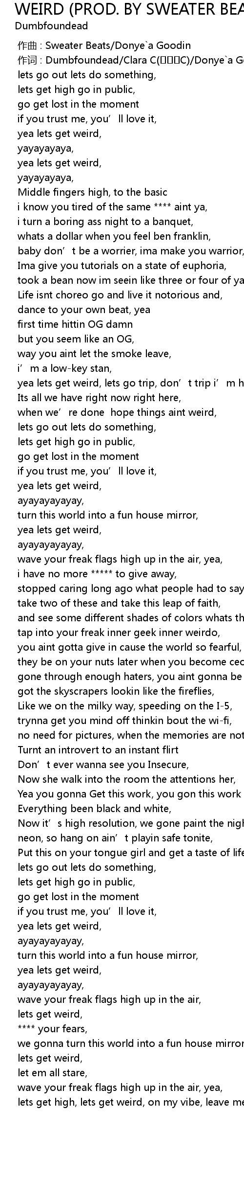 | [00:01.000] | zuò cí : Dumbfoundead Clara C C Donye a Goodin |