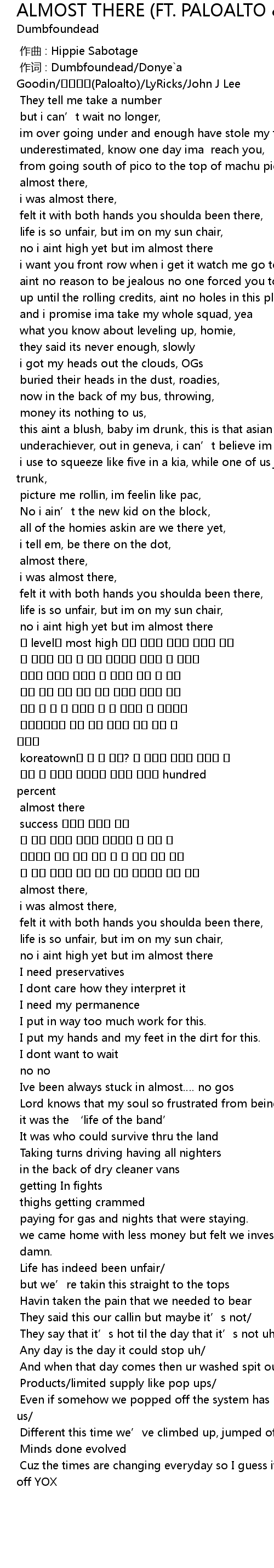 | Song | ALMOST THERE (FT. PALOALTO & YEAR OF THE OX) (PROD. BY HIPPIE SABOTAGE) |