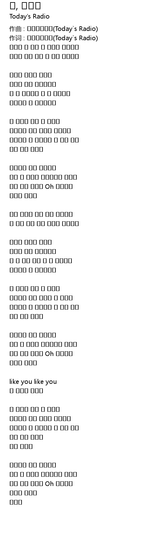 | 作词 : 오늘의라디오(Today`s Radio) | |