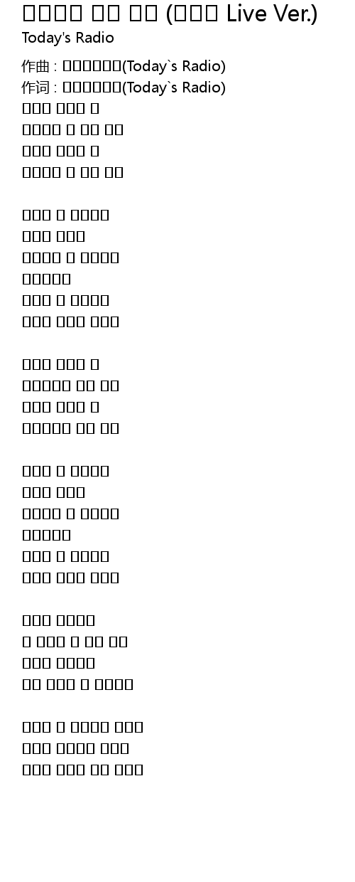 | 作词 : 오늘의라디오(Today`s Radio) | |