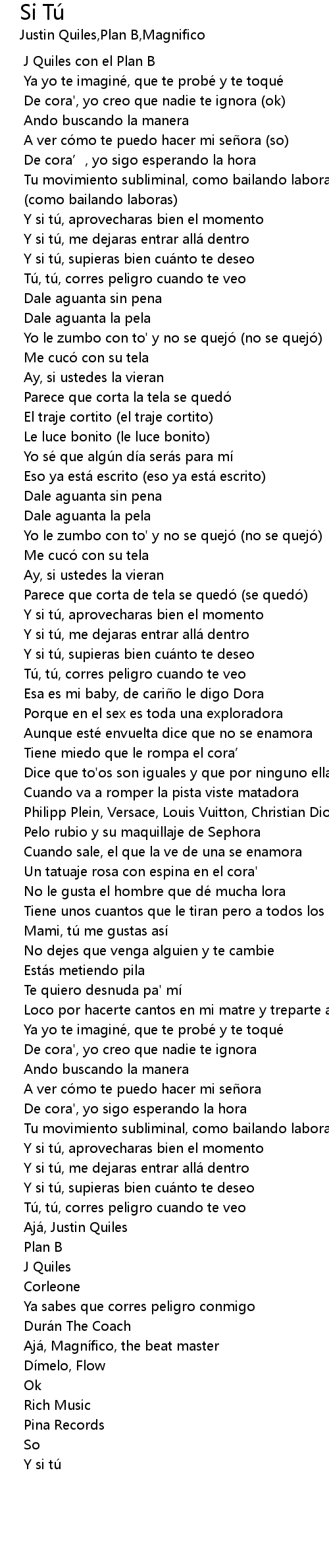 | [01:21.675] | Yo le zumbo con to' y no se quejo no se quejo |