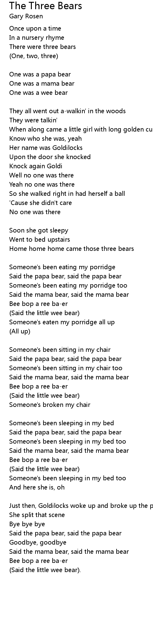 The Three Bears Lyrics