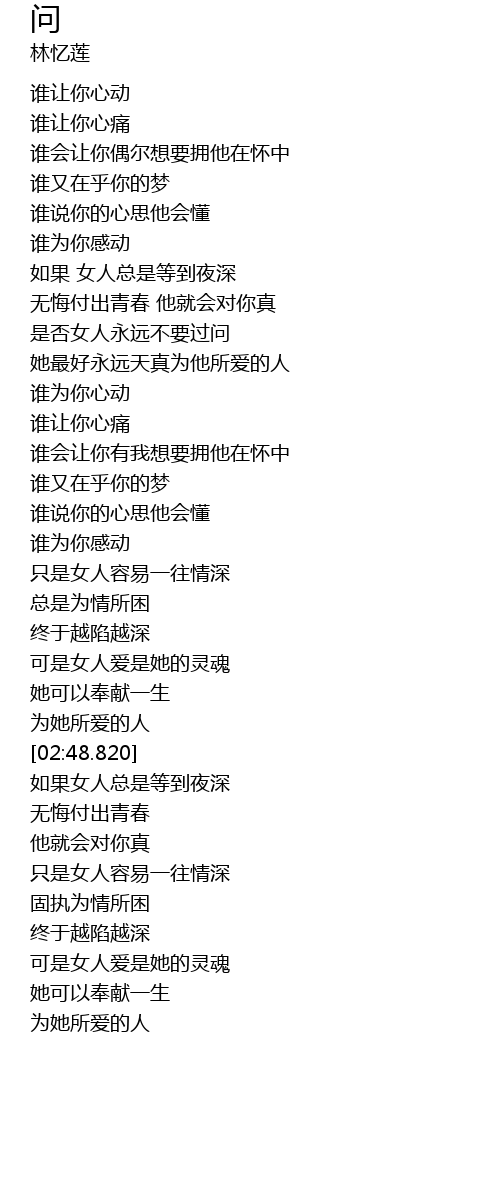 | [01:44.979] | 只是女人容易一往情深 |