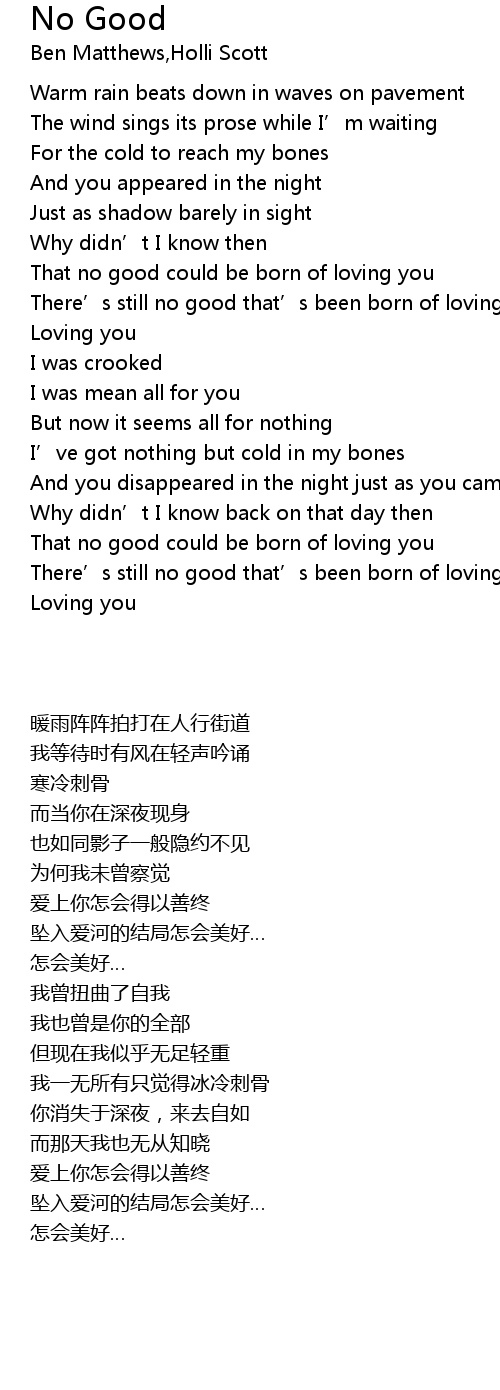 | [01:28:221] | There’s still no good that’s been born of loving... |
