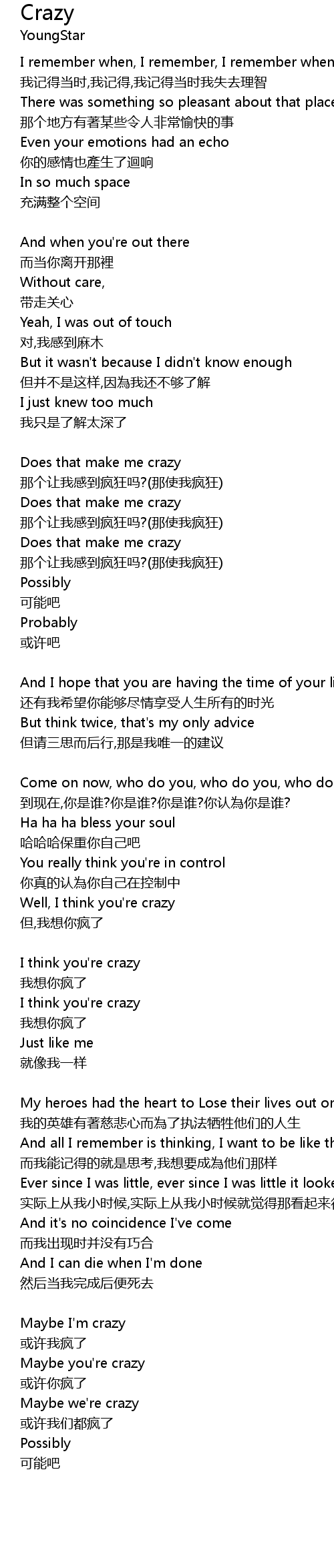 | 我记得当时,我记得,我记得当时我失去理智 | |