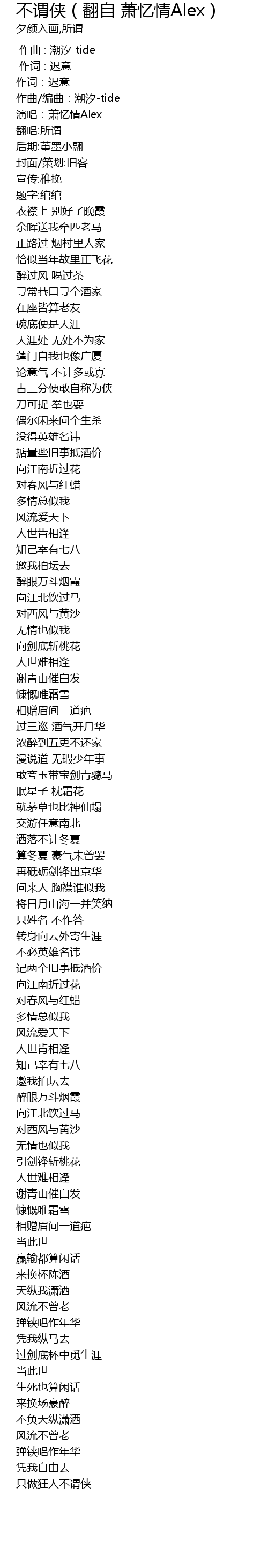 | [00:07.949] | 演唱:萧忆情Alex |