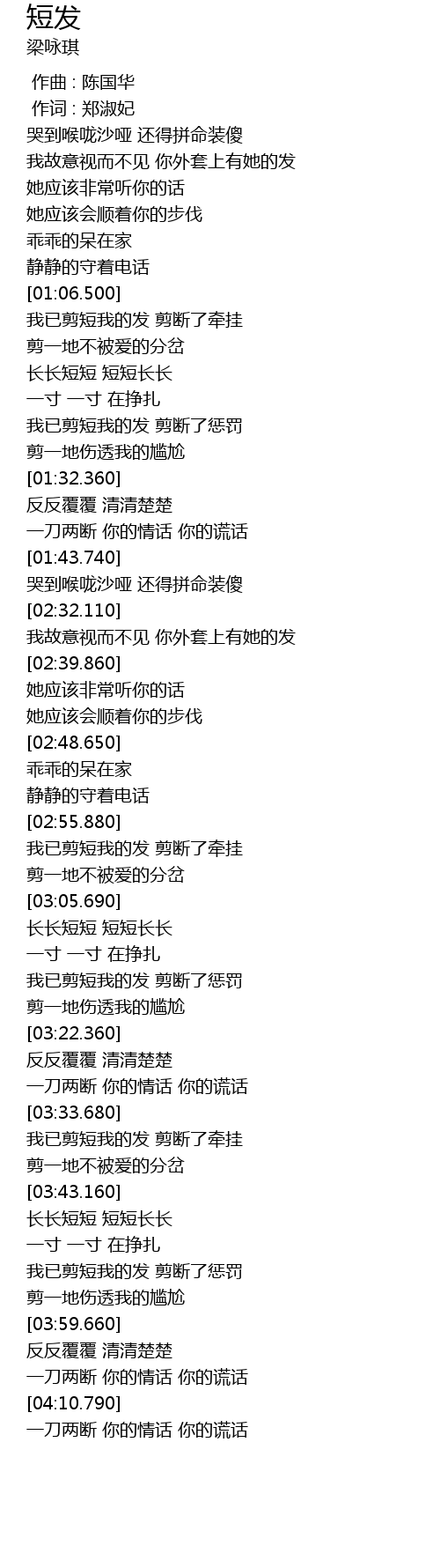 | [02:57.020] | 我已剪短我的发 剪断了牵挂 |