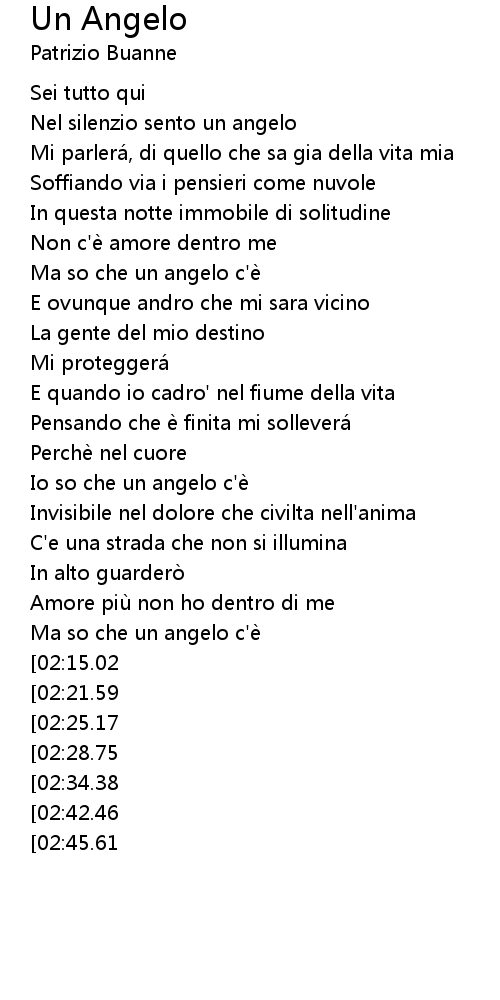 | [03:42.80][02:45.61] | Io so che un angelo c'è |