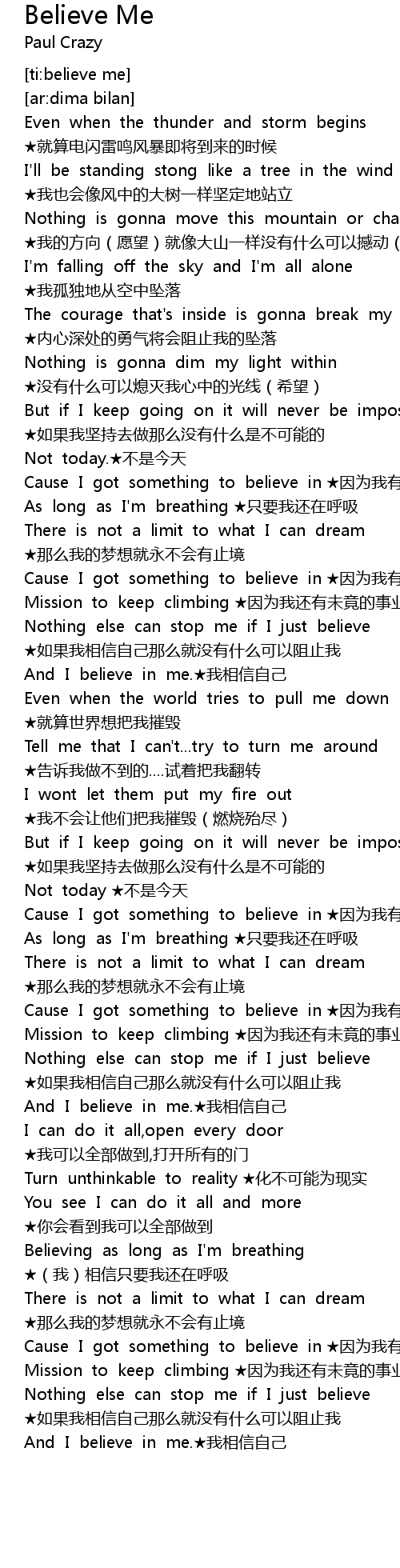 | [01:35.165] | And I believe in me.★我相信自己 |