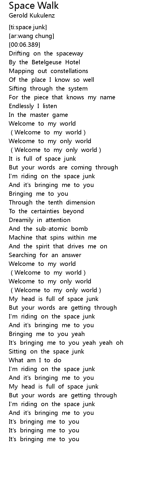 | [03:11.318] | I' m riding on the space junk |