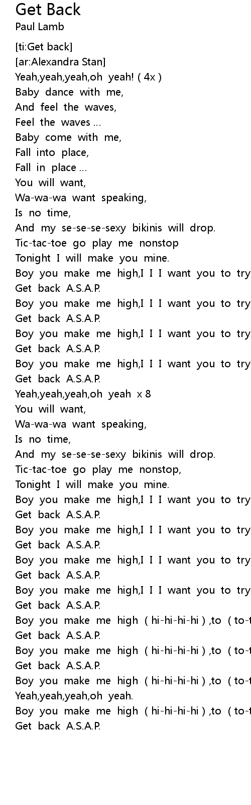 | [01:35.283] | Get back A.S.A.P. |