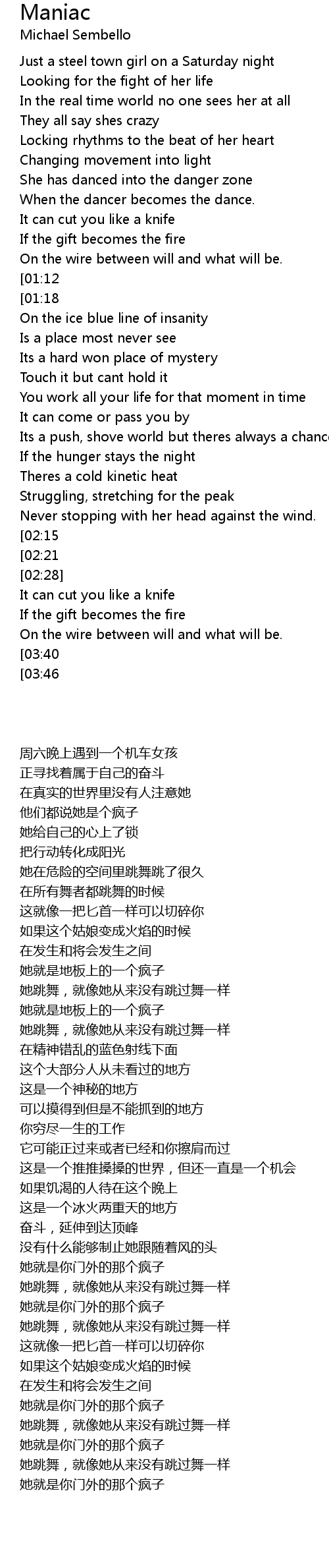 Shes a maniac--maniac at your door |