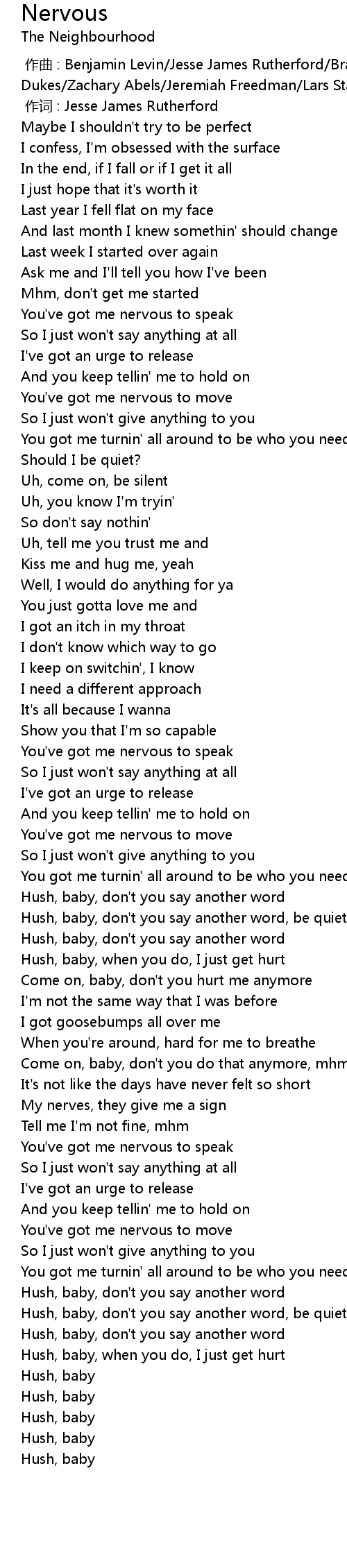 | [00:36.85] | You've got me nervous to speak |