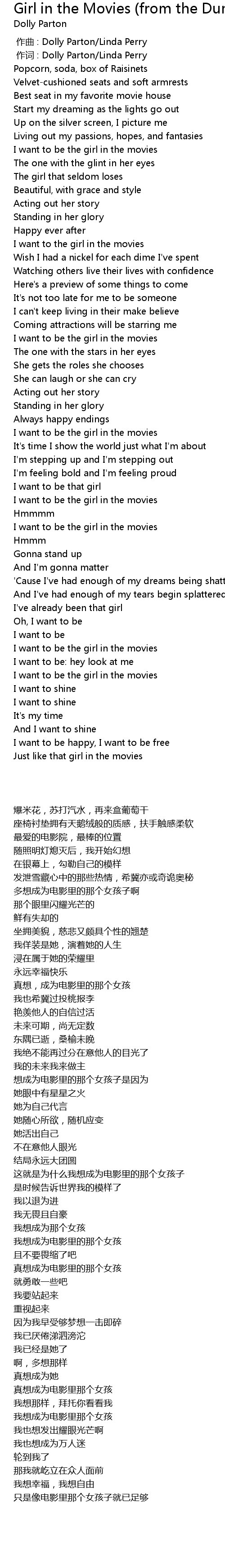 | [00:01.000] | 作词 : Dolly Parton/Linda Perry |