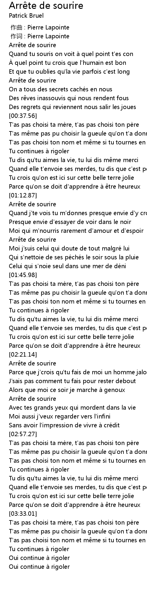 | [02:05.43] | Tu dis qu' tu aimes la vie, tu lui dis m me merci |
