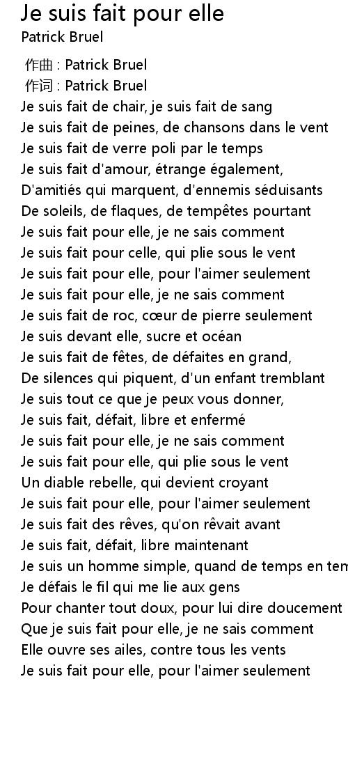 | [01:49.157] | Je suis fait pour elle, je ne sais comment |