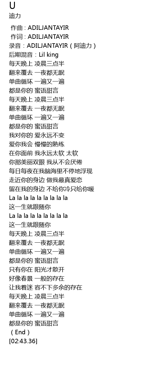 | [00:01.000] | 作词 : ADILJANTAYIR |