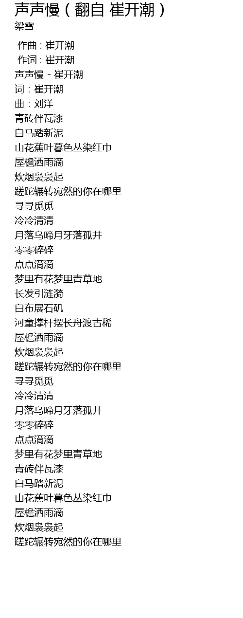| [00:02.299] | 声声慢 - 崔开潮 |