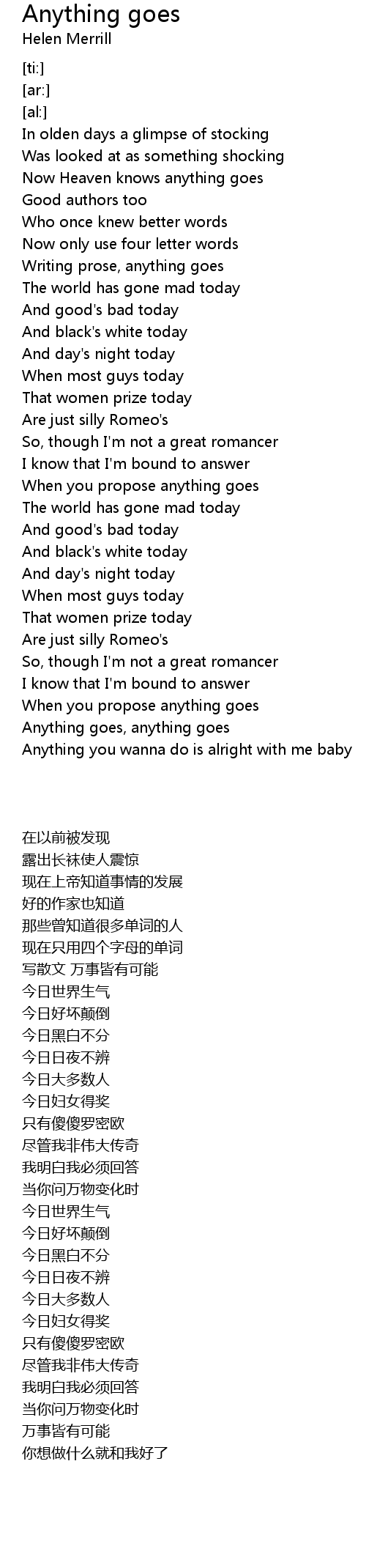 Anything goes, anything goes |