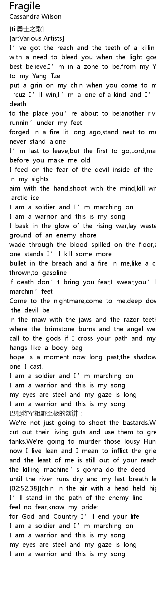 | [03:03.00] | I am a soldier and I ' m marching on |