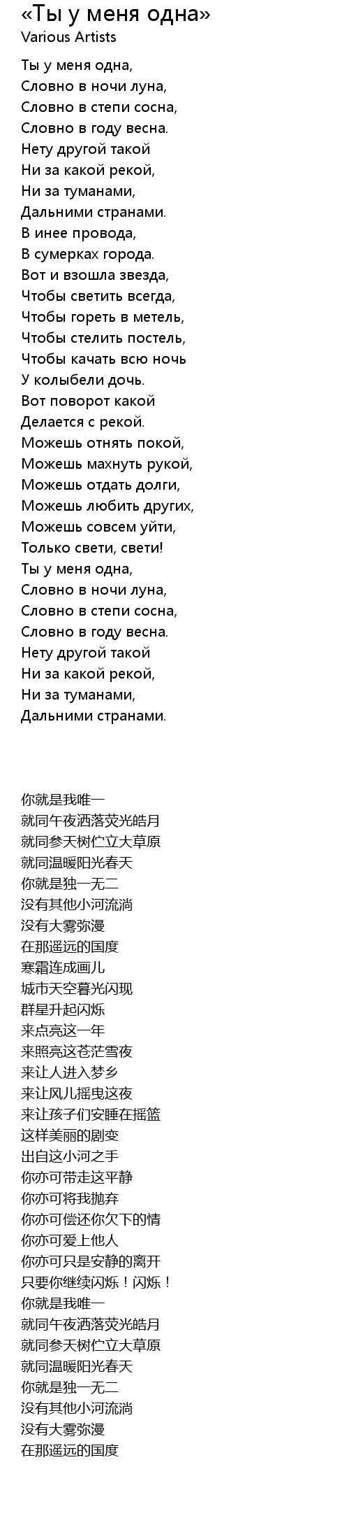 | [00:04.40] | Ты у меня одна, |