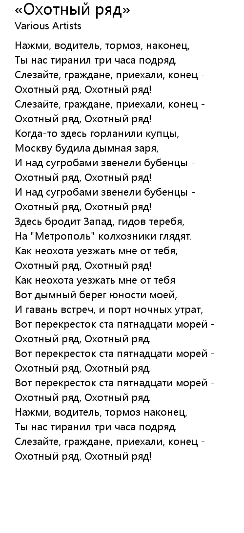 «Охотный ряд»  Lyrics